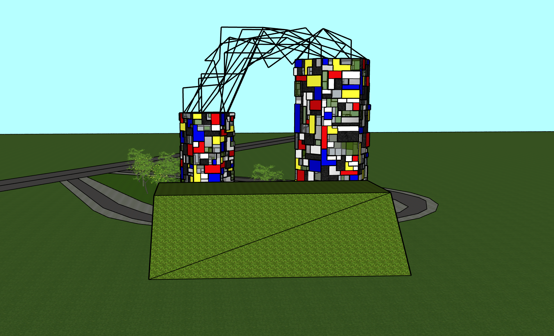 This is my process of creating the first 3D piece. First, I created the outlines of my design digitally using AutoCAD and created a DFX document. Then I visited the laser cutting workshop, where I laser cut the pieces. I chose pulpboard for the material, 1mm for the curving parts because it bends easily, and then 3mm for the rest of the pieces. After all the pieces were cut I brought everything back to the studio. I noticed some pieces were ruined during the cutting because of a cutting malfunction so for that reason I took the rest of the material that remained and tried to replace the ruined pieces by cutting it as carefully and precisely as possible with a craft knife. I also sandpapered the edges to be more smooth. After all the extra pieces were cut, I tested out different techniques in which I would try to recreate the exterior. In this picture, I tried to colour the triangles with markers which left a messy result but helped me decide on the colours shades...